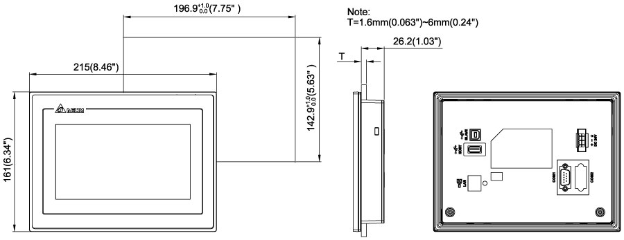 | 外觀尺寸 (W x H x D,mm) | 開(kāi)孔尺寸 (W x H,mm) | |