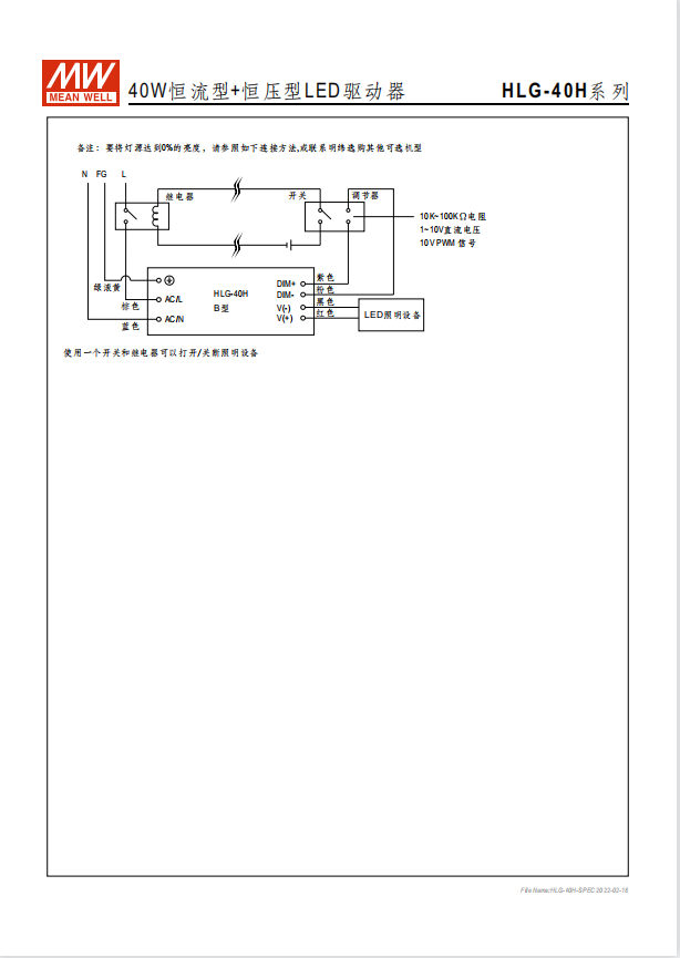 瓦數(shù): 40W~600W 功能特性 90~305VAC交流輸入,內(nèi)建主動式功率因子矯正功能(active PFC) 96%超高效率(HLG-600H) 金