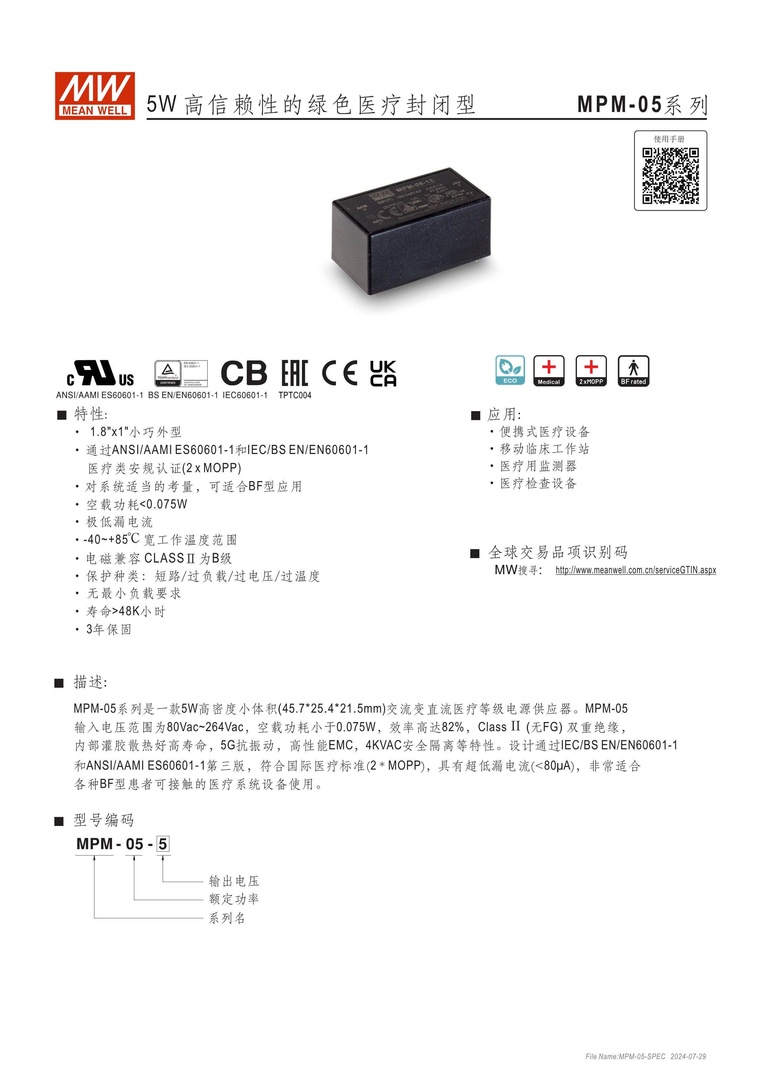 安裝于終端設(shè)備之PCB上 通過(guò)醫(yī)療類安規(guī)認(rèn)證 (2xMOPP) 在適當(dāng)系統(tǒng)條件下,適合用于BF應(yīng)用