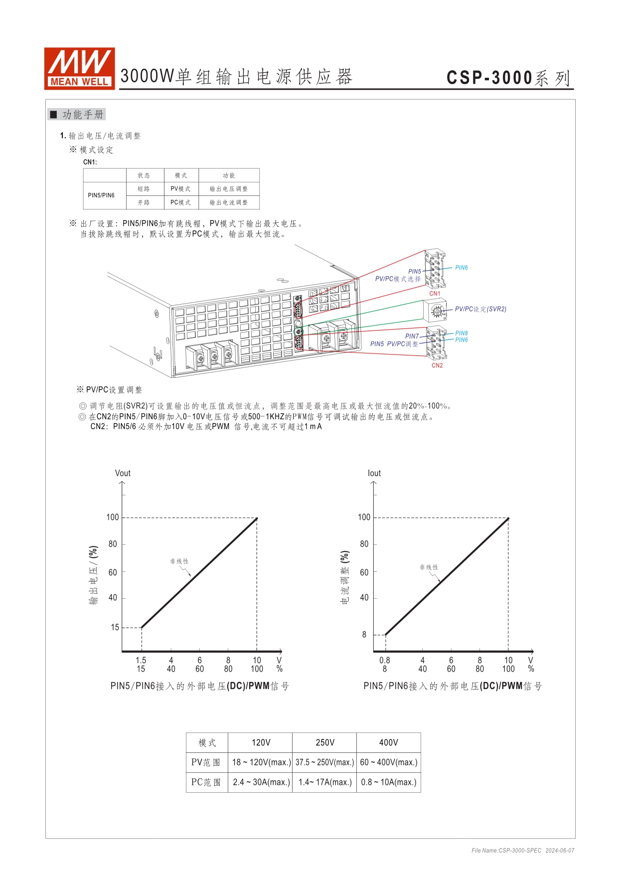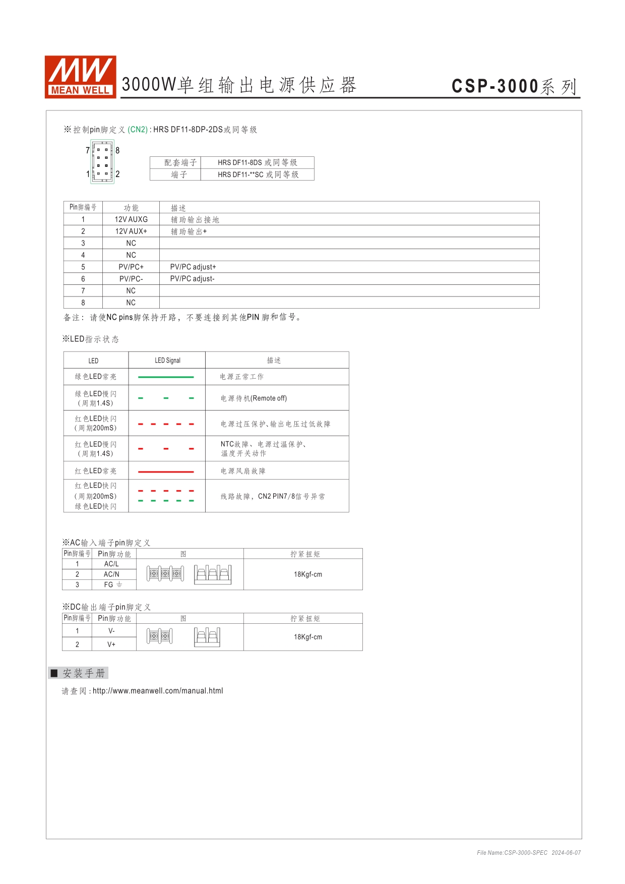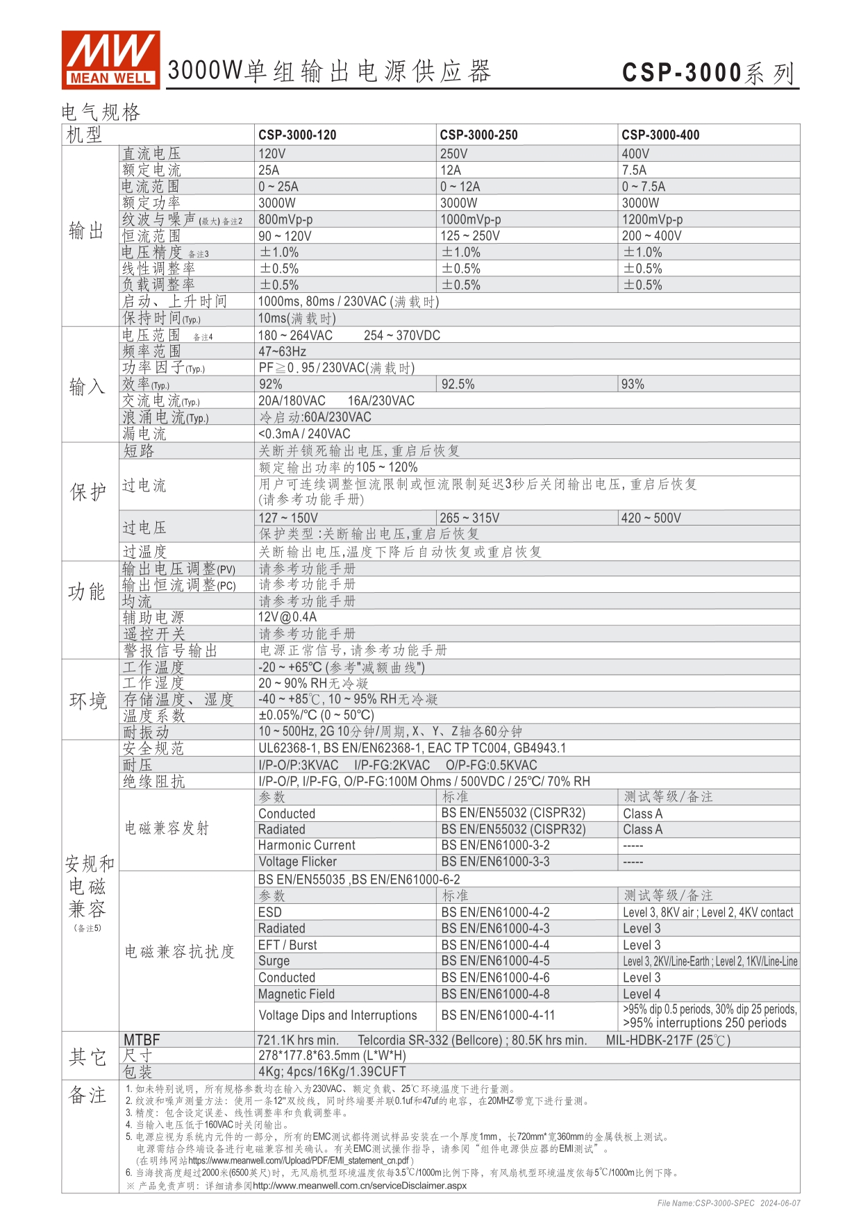 180~264VAC交流輸入 內(nèi)置主動式PFC功能 高效率達93% 內(nèi)建直流風(fēng)扇強制氣冷 可程序化輸出電壓/電流 主動式均流設(shè)計達9000W(2+1) 內(nèi)建遠程開關(guān)控制 /輔助電源/輸出OK訊號 保護種類:短路、過電流、過電壓、過溫度、風(fēng)扇失效 5年保固