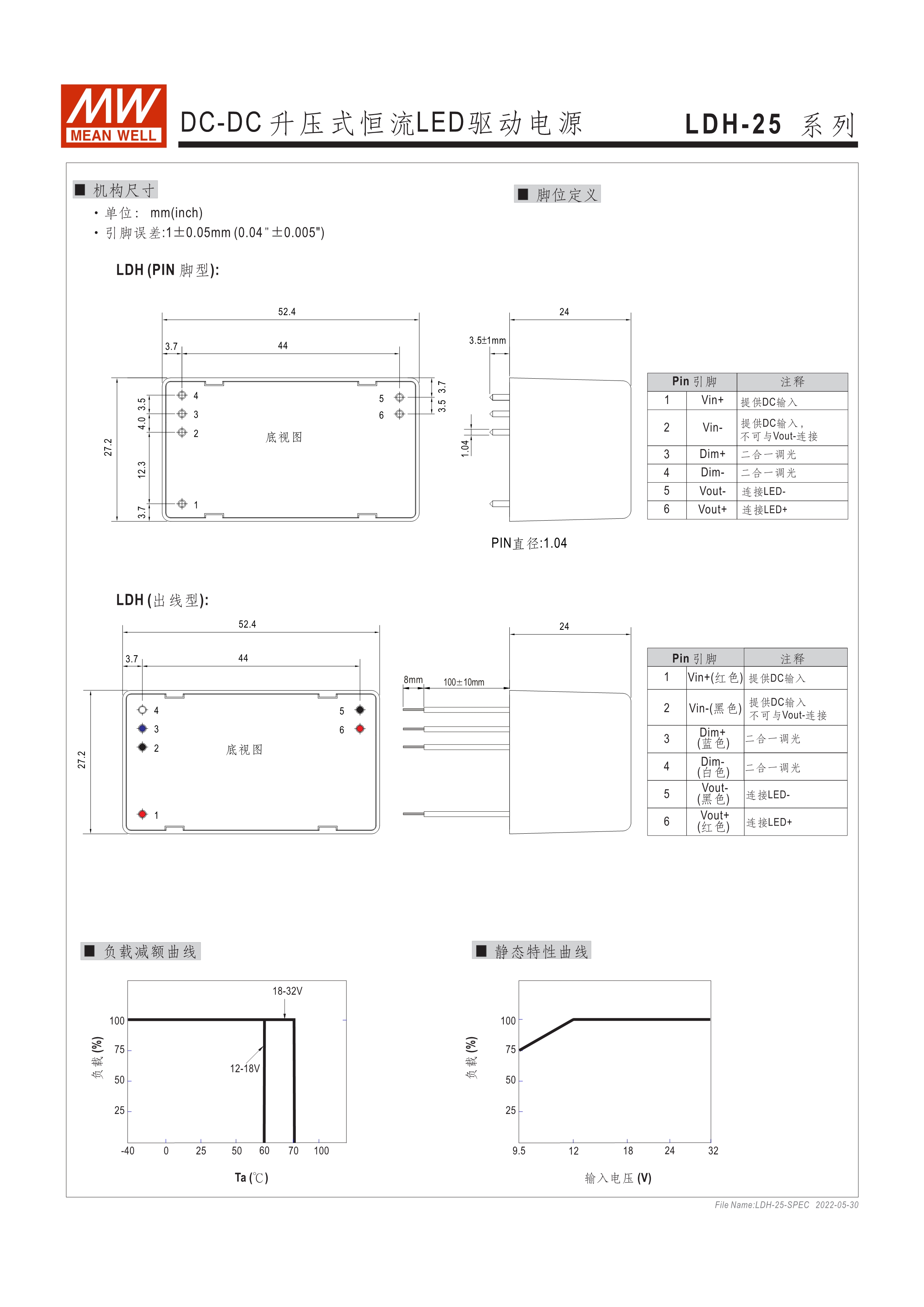 DC/DC升壓式恒流輸出LED驅(qū)動器 95%超高效率 不需外接任何組件即可符合EN55015 內(nèi)建PWM+模擬調(diào)光功能及開/關(guān)遙控功能 適合于升壓型照明系統(tǒng)(需插件于PCB母板上) 具備插pin及出線兩種型式