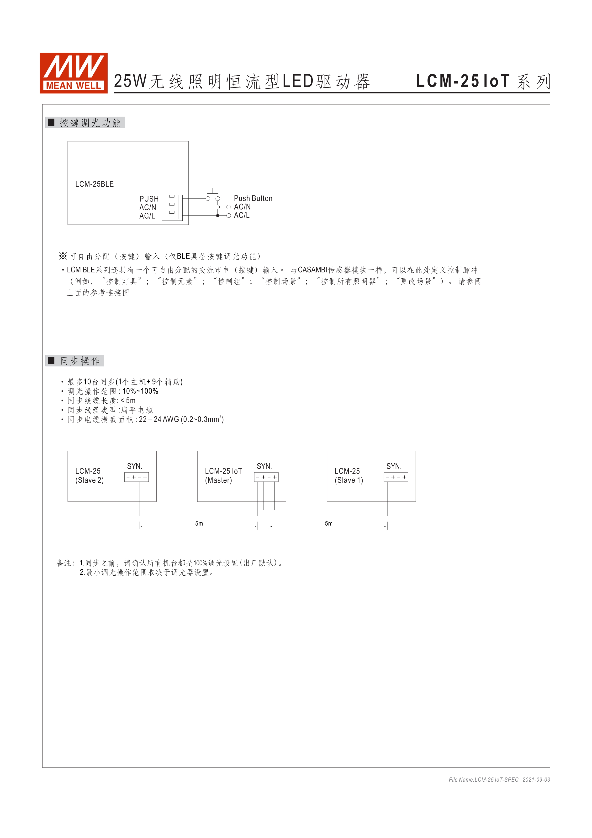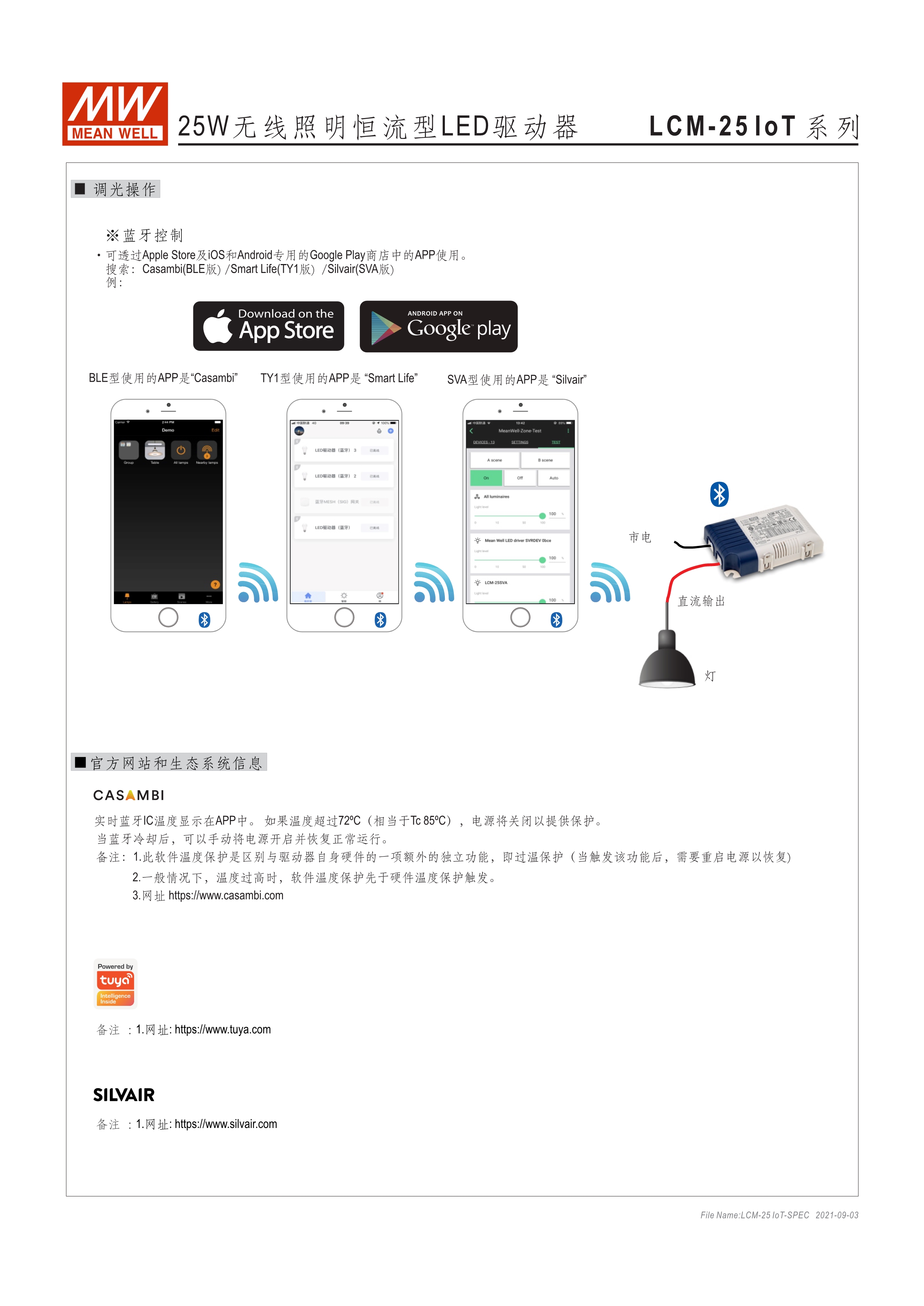 恒流輸出模式多段可選 無頻閃設(shè)計(jì) 塑料外殼及符合Class II無地線設(shè)計(jì) 主動式PFC設(shè)計(jì) 調(diào)光功能:全系列藍(lán)芽智能控制及Push Dim(僅LCM系列) 雷擊保護(hù)耐壓設(shè)計(jì)2KV(L-N) 保護(hù)功能:短路、過電壓、過溫度