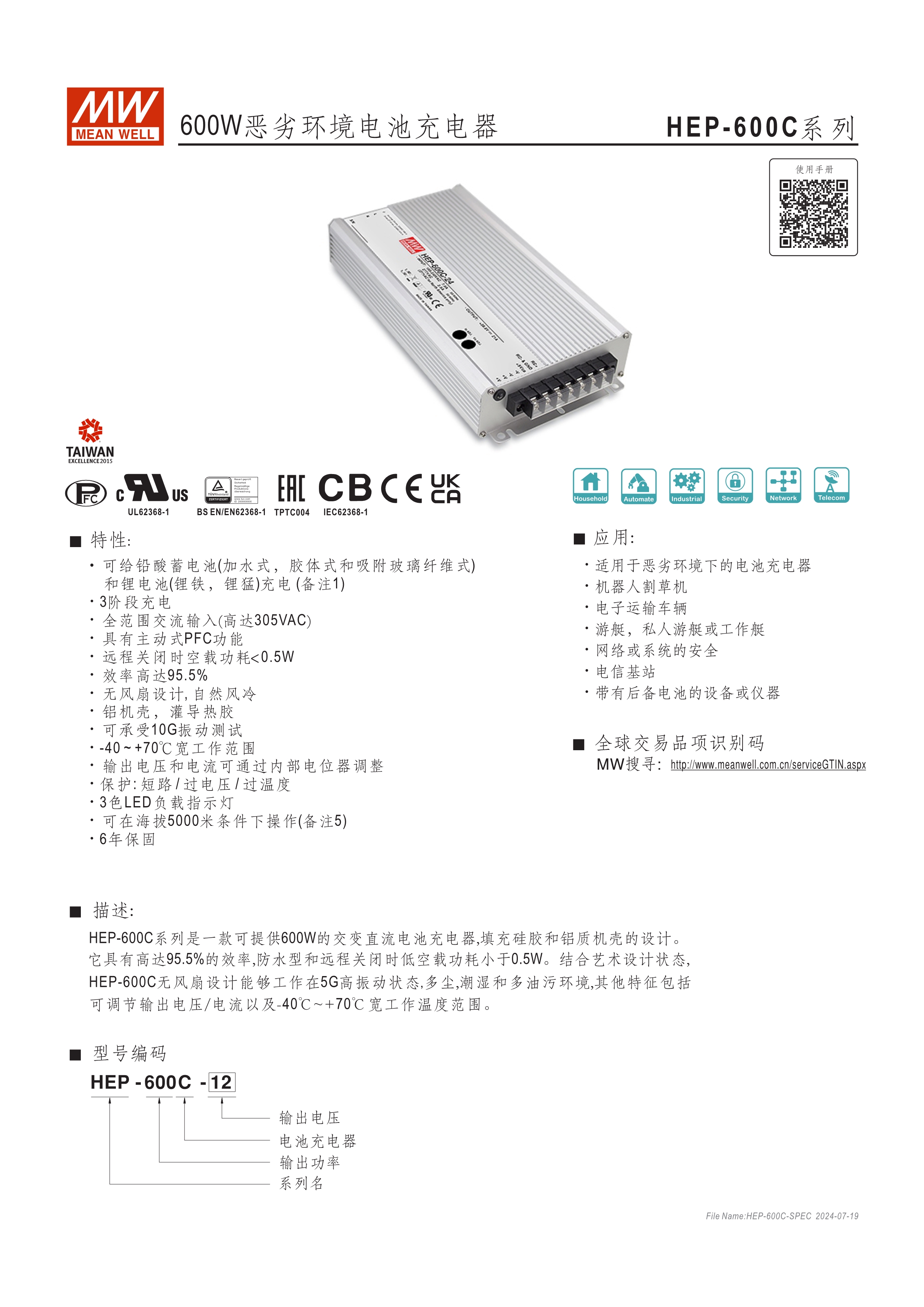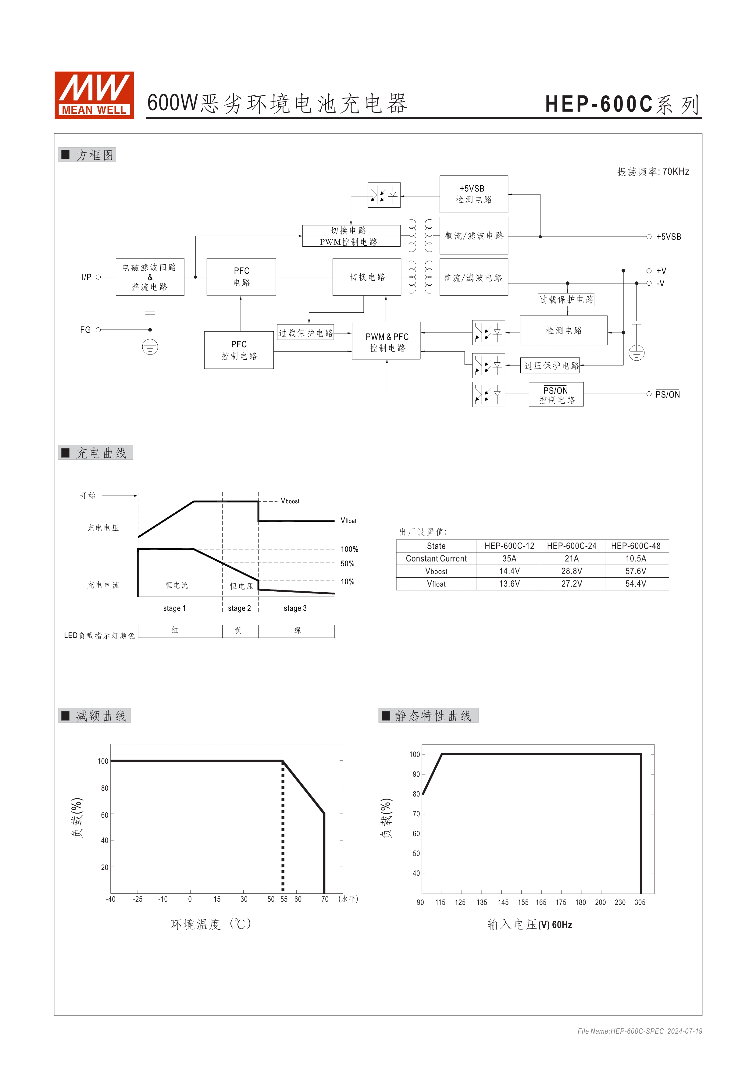 鋁殼、無風(fēng)扇、內(nèi)灌導(dǎo)熱膠 -40~+70oC超寬溫操作溫度 耐震10G 可使用於5000M高海拔 可透過VR調(diào)整充電電壓 (11.5~15.1V, 23~30.2V, 46.1~60.5V) 可透過VR調(diào)整充電電流50~100% 保護(hù)功能:短路、過壓、過溫度 6年保固