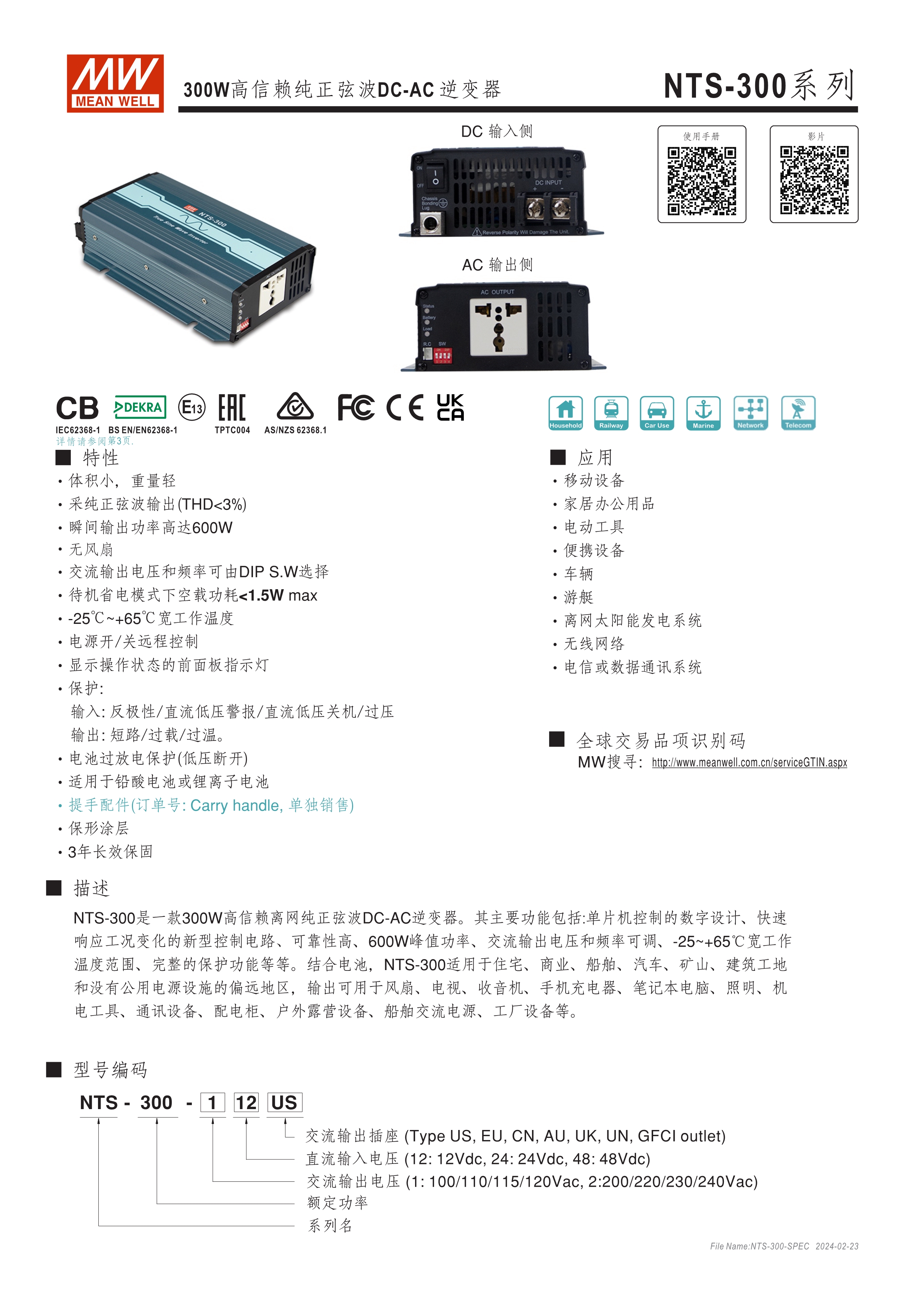 DC-AC純正弦波輸出 (THD<3%) 無風(fēng)扇設(shè)計,效率最高達93%,可自然風(fēng)冷散熱 內(nèi)建DIP S.W可彈性自調(diào)AC輸出電壓、頻率、節(jié)能模式 多重智能保護功能: DC輸入側(cè) - 極性反接、電壓過低、電壓過高保護 AC輸出側(cè) - 短路、超載、過熱保護