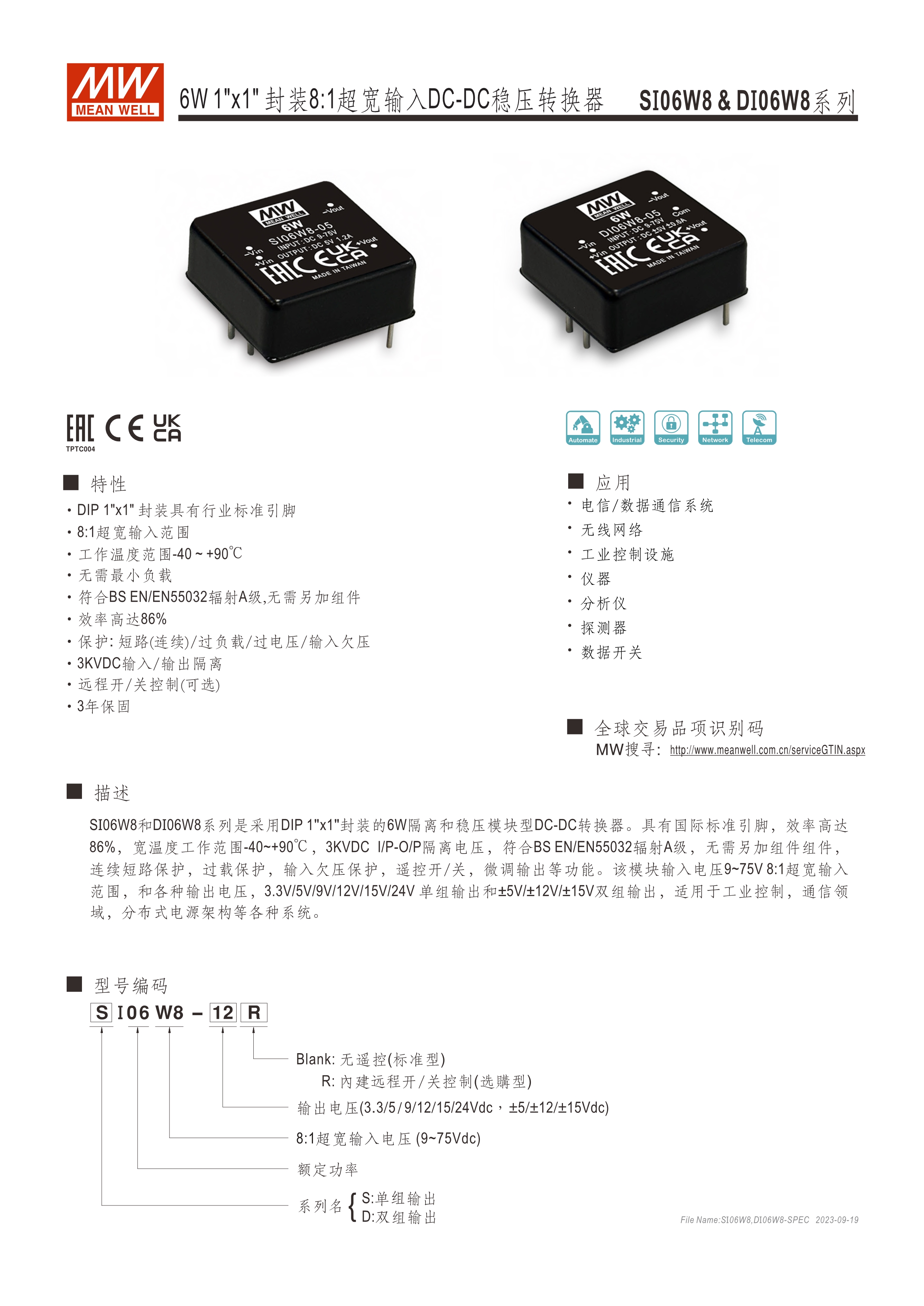模塊型快選表 DIP封裝 輸入/輸出隔離—1.5KVDC 擁有單組輸出機種 遙控功能, ±10%輸出調節(jié)