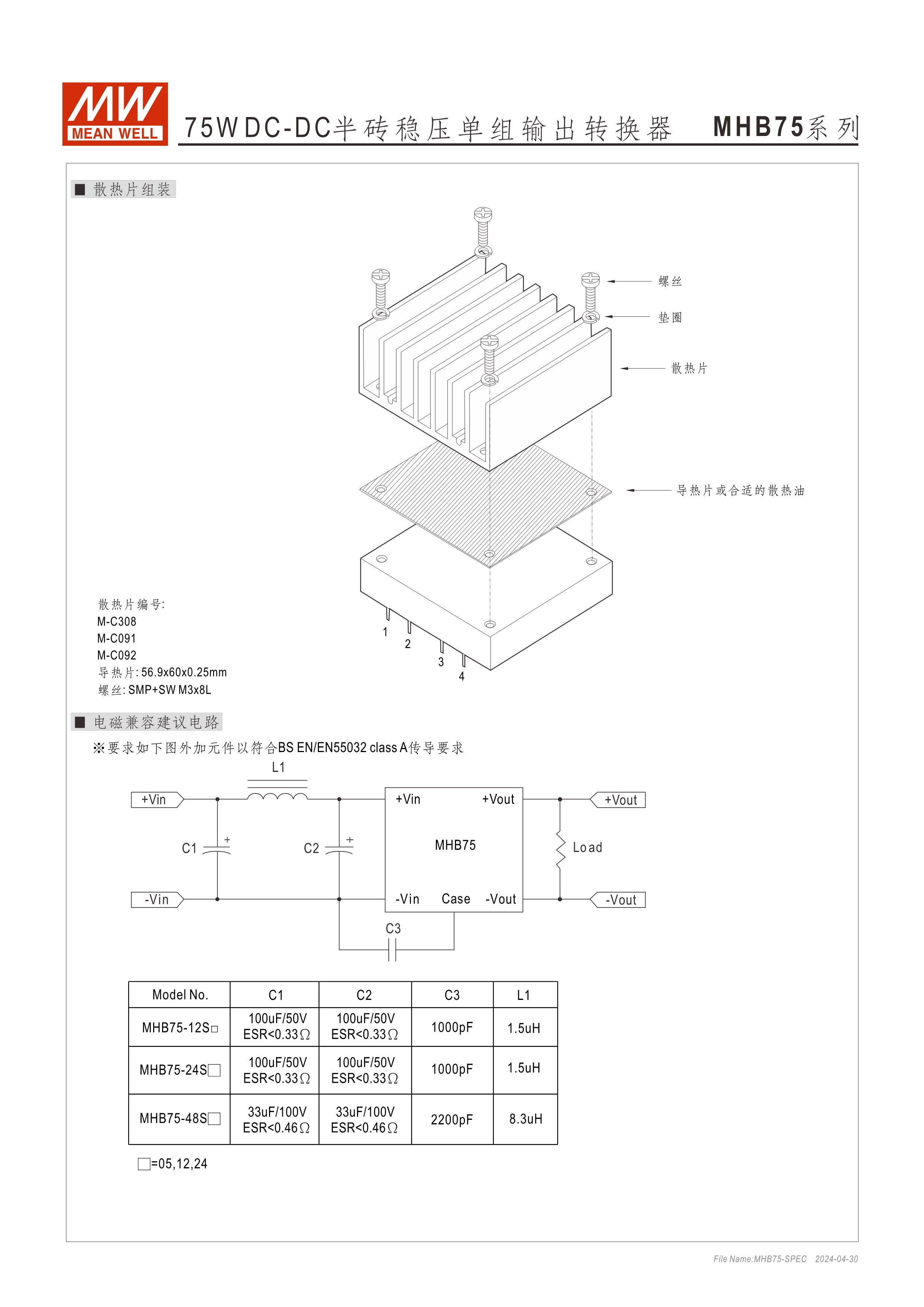 模塊型快選表 2.28” x 2.4” x 0.5”半磚尺寸 DIP封裝 2:1 寬輸入范圍 1.5KVDC 輸入/輸出隔離 內(nèi)建遙控及遙感功能 可2.5V / 3.3V / 15V 輸出 可選購散熱片