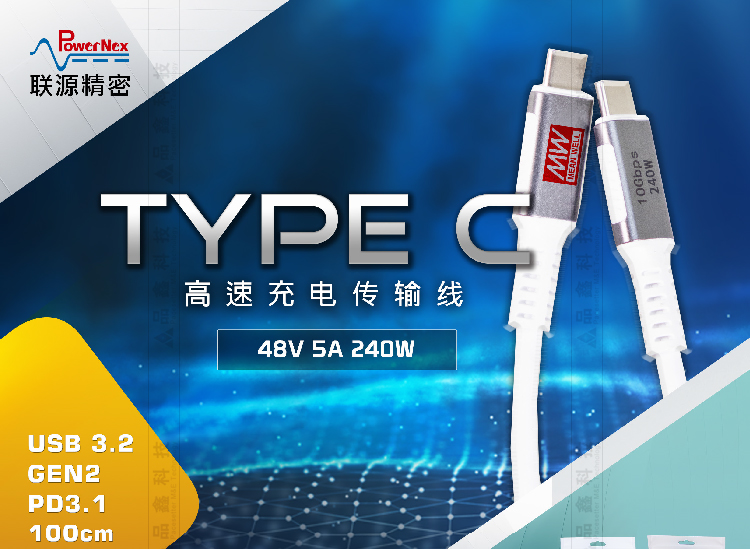 USB傳輸線 明緯聯(lián)源精密USB 3.2 GEN2 Type C 240W充電/傳輸線